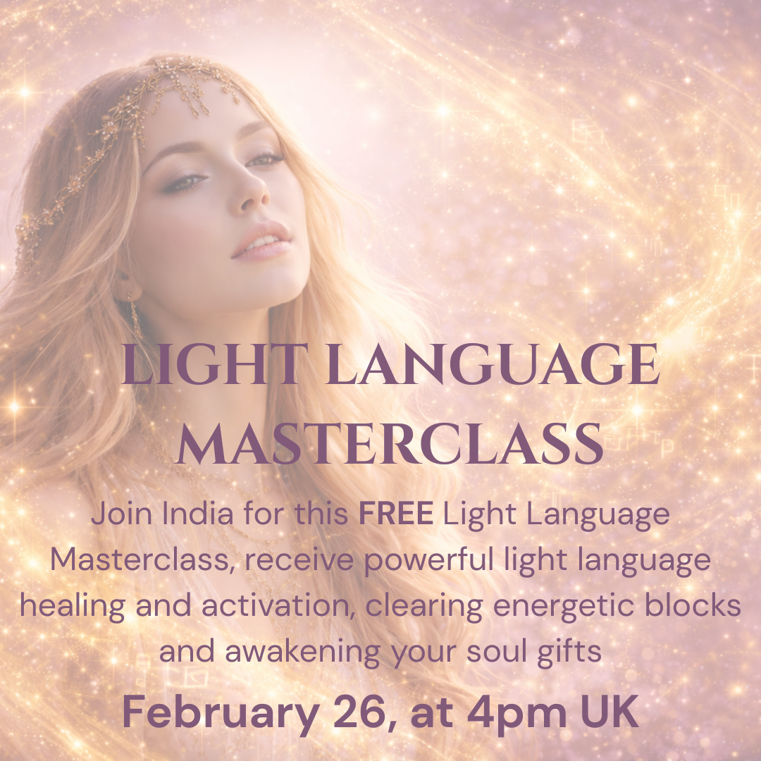 In this free experience, India will guide you through a transformational Light Language transmission designed to gently clear energetic blocks and awaken the gifts already held within your soul.